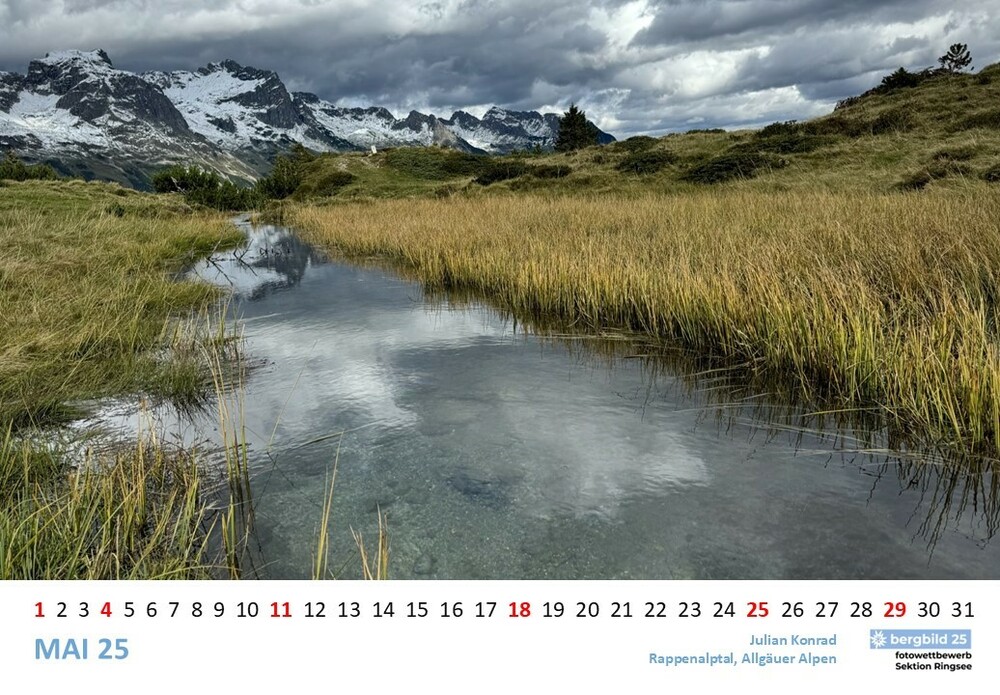 Die 13 besten Einsendungen des Wettbwerbs bergbild 24/25 schmücken den Vereinswandkalender des laufenden Jahres. Im Format A2 schmücken sie die Wände der Geschäftsstelle Ringsee und des Flurs zu den Umkleideräumen der Kletterhalle, Die Prämierung der Siegerbilder findet im Herbst im Rahmen eines "bergbild Fotoabends". statt. Der Termin steht noch nicht fest.