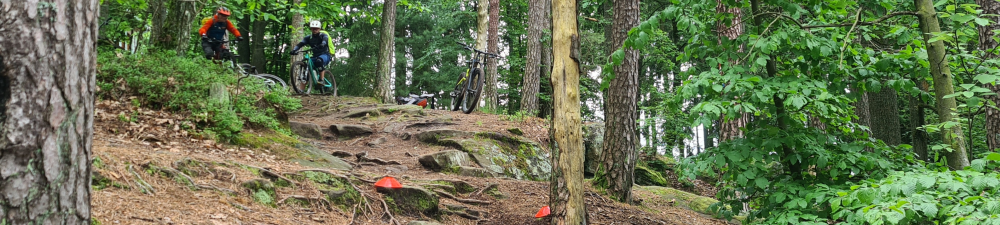 Sonntag: Erweiterte Fahrkenntnisse je nach Fahrkönnen. Einteilung in 2 Gruppen. Die Grundlagen werden auf dem Trail vertieft und je nach Bedarf weitere Inhalte wie mittlere Stufen bergab, Kurvenfahren, etc. hinzugefügt.