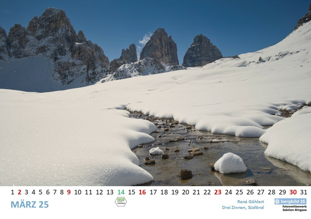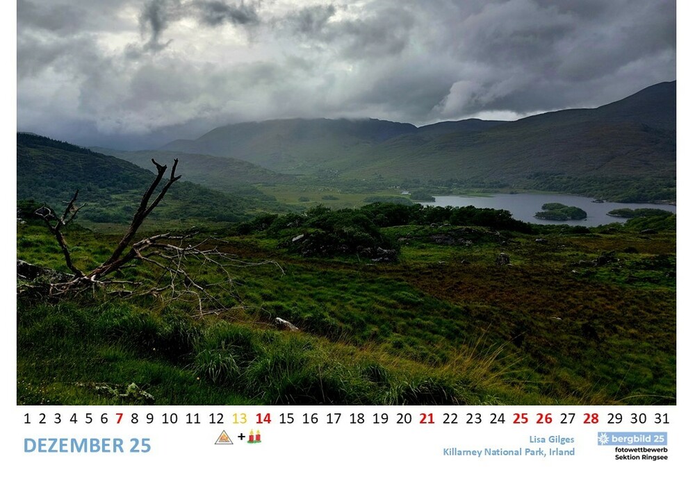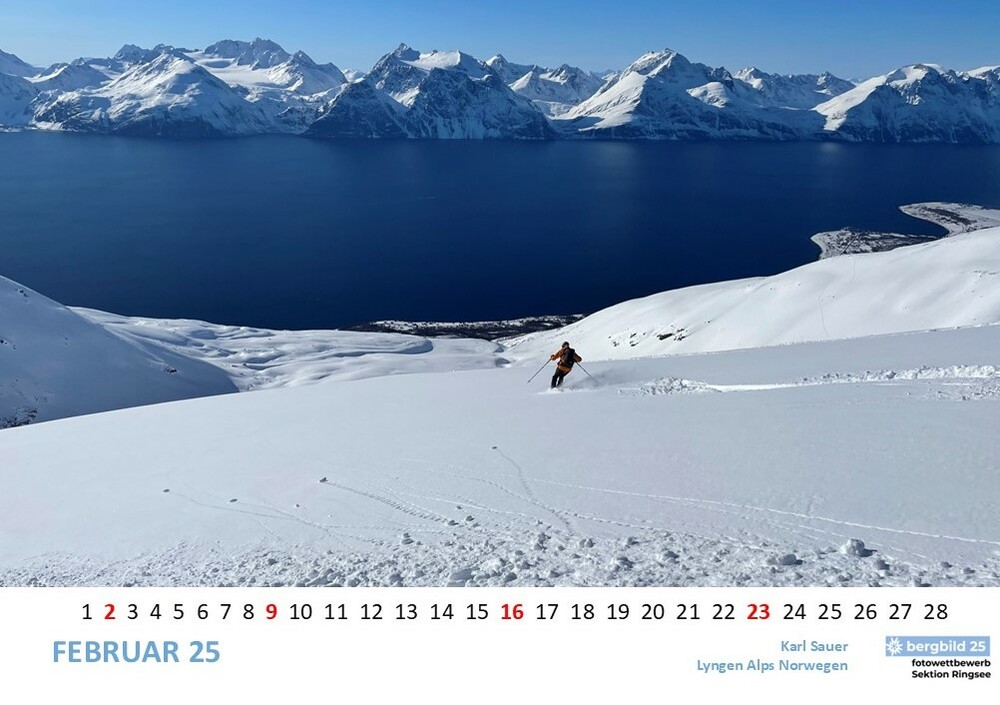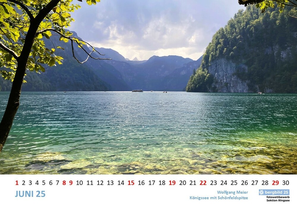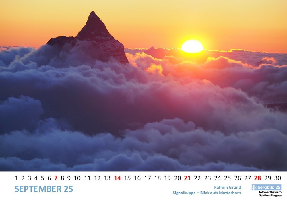 Die 13 besten Einsendungen des Wettbwerbs bergbild 24/25 schmücken den Vereinswandkalender des laufenden Jahres. Im Format A2 schmücken sie die Wände der Geschäftsstelle Ringsee und des Flurs zu den Umkleideräumen der Kletterhalle, Die Prämierung der Siegerbilder findet im Herbst im Rahmen eines "bergbild Fotoabends". statt. Der Termin steht noch nicht fest.